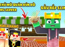 MINECRAFT THỬ THÁCH SINH TỒN TRÊN 1 BLOCK #6: Thử mở quán bún bò bán cho người chơi server!!